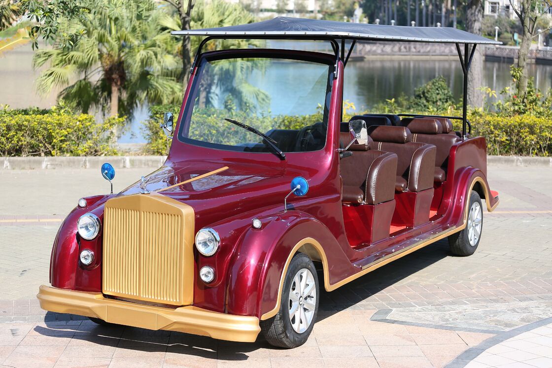 सीई स्वीकृत 8 सीटों वाली रेड विंटेज इलेक्ट्रिक क्लासिक कार 72 वी ट्रोजन बैटरी इलेक्ट्रिक क्लासिक बस