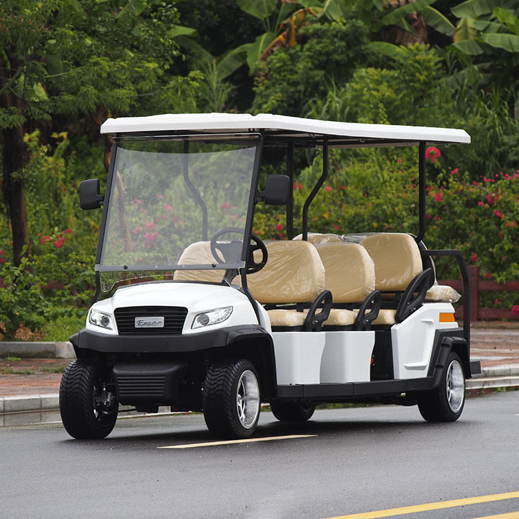 EXCAR 8 सीटर व्हाइट इलेक्ट्रिक साइटसीइंग कार टूरिस्ट बस ऑनबोर्ड 17AH चार्जर के साथ